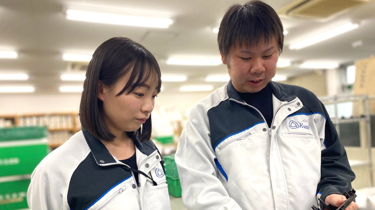 知らないことを学べるって、ワクワクだ。大学の合同説明会でクミ化成を知り、新しいことに挑戦しやすい点に魅力を感じました。生産技術課では、組立の順序や秒数などをまとめた仕様書を作成しています。